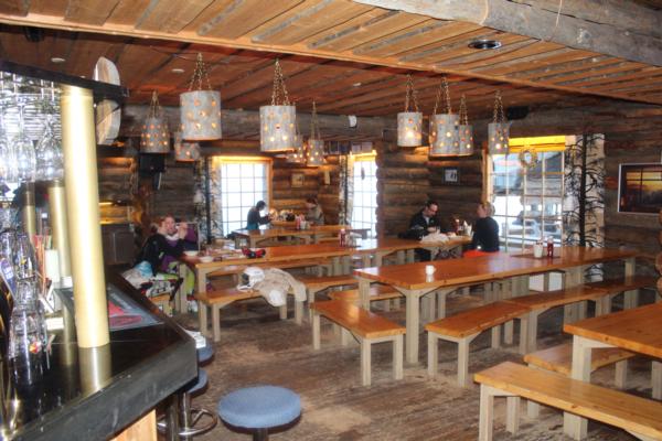 Slopeside next to the beginner area there is a good bar / restaurant the Sallatunturin keloravintola. Made in a traditional wooden style this has reasonably priced lunch buffet at 10 Euros per head as well as a more extensive menu. The hotel also has a small shop but for those wanting to go the self catering route you really will need to head to the nearest supermarket that it 10km away as it offers more choice and better value than the shop.